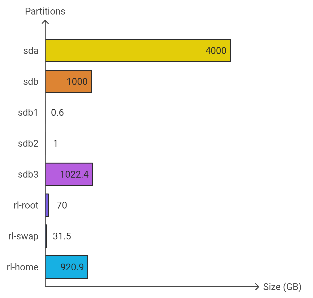 └─rl-home 253:2 0 920.9G 0 lvm /home