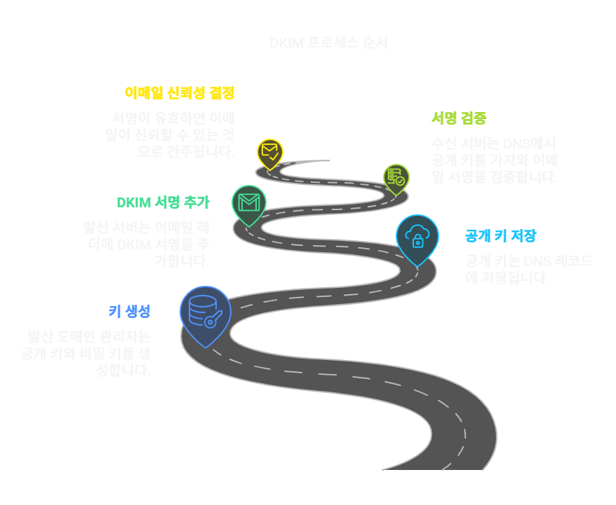 - DKIM은 이메일의 무결성을 보장하며, 이메일 서명을 인증한다.