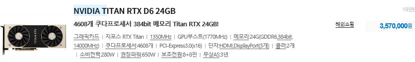 Titan은 하이엔드 제품이라고 성능이 아주 뛰어나고 가격이 월등히 비싼 모델입니다.