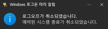 위와 같은 알림이 온다면 자동 종료 예약이 정상적으로 취소된 상태다.