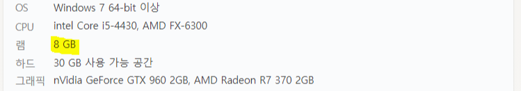 (게임에 따라 최소사양과 권장사양이 모두 다르긴 함)