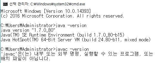 자바 버전은 정상적으로 1.7로 출력되지만,