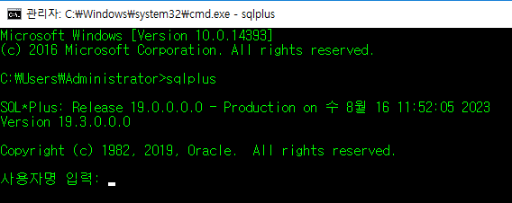기존 Oracle 10g를 사용하다가 Oracle 19c를 설치하고나면 cmd창에서 sqlplus를 입력하였을 때, 아래와 같이 신규 설치된 버전으로 접속 됩니다. 기존 버전으로 접속을 원할 시 방법을 작성하도록 하겠습니다.