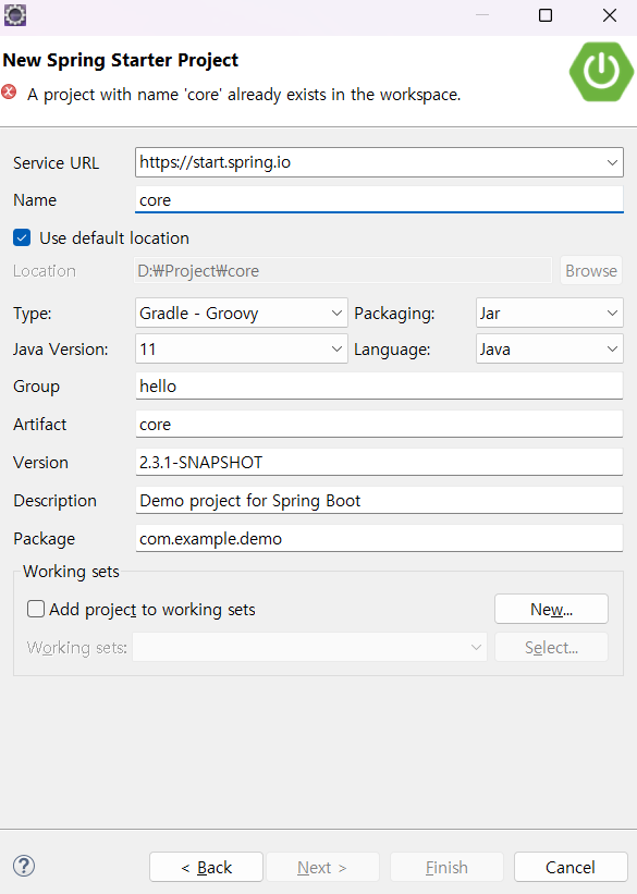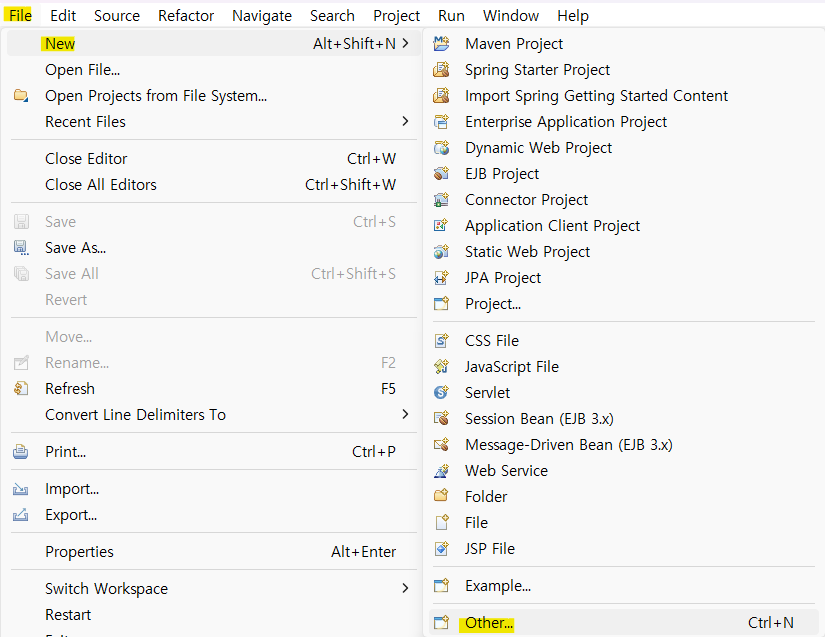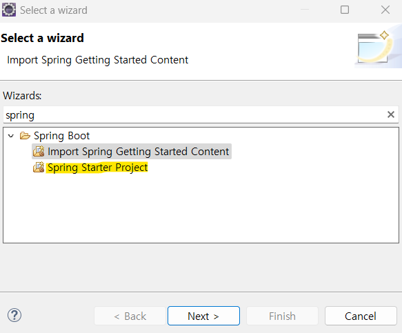 8. [프로젝트 생성] File → New →Other → Spring Starter Project 클릭 후 Next