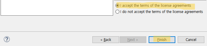 5. Review Licenses 동의(accept) 후 [Finish]
