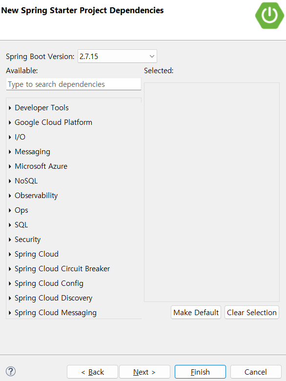 9-1. Spring Boot 버전을 선택(작성자는 Dependencies 선택하지 않음) 후 FINISH