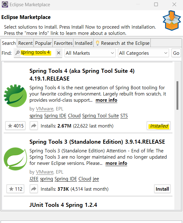 3. spring tools 4 검색 (STS4 라고 검색해도 나옴)