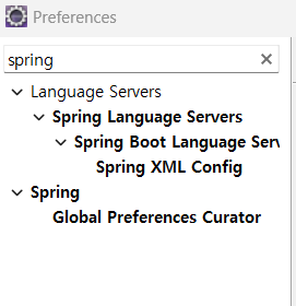 설치 전과는 다르게 spring 설정 관련 사항이 검색됩니다.