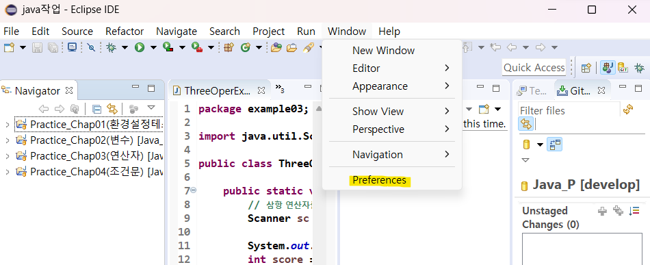 1. [설치확인] Eclipse → Window → Preferences