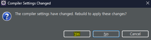 7. 버전을 맞추면 오류가 사라지는 것을 확인할 수 있다. 버전을 1.7로 맞춰준 뒤에 [Apply]를 누르게 되면 아래와 같은 알림 창이 뜬다. [Yes]를 누르자