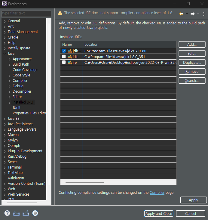 | The selected JRE does not support the current compiler compliance level of 1.8 (0) | 2024.04.09 |